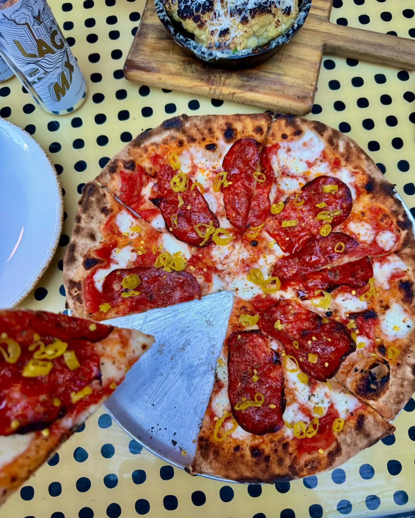 While pizza is undoubtedly the star, Dr. Pizza offers a comprehensive dining experience that extends beyond its acclaimed pies. The menu features an enticing selection of appetizers, such as marinated olives, pickled mushrooms, and rich burrata, perfect for whetting your appetite. Fresh and invigorating salads, including a vibrant citrus salad and a hearty mushroom and lentil salad, provide lighter options. To complement your meal, Dr. Pizza offers a thoughtfully curated selection of beverages. From local craft beers like Colimita Lager and Allende Brown Ale to a fine array of wines, including the Villa Bianchi Verdicchio and Hacienda Florida Rosado, there's a perfect pairing for every dish. And for a sweet finish, indulge in their delightful desserts, such as the creamy Panna Cotta de Café or the traditional Cannoli with ricotta cream and lemon curd. It's clear that Dr. Pizza is dedicated to providing a complete and satisfying culinary journey from start to finish.