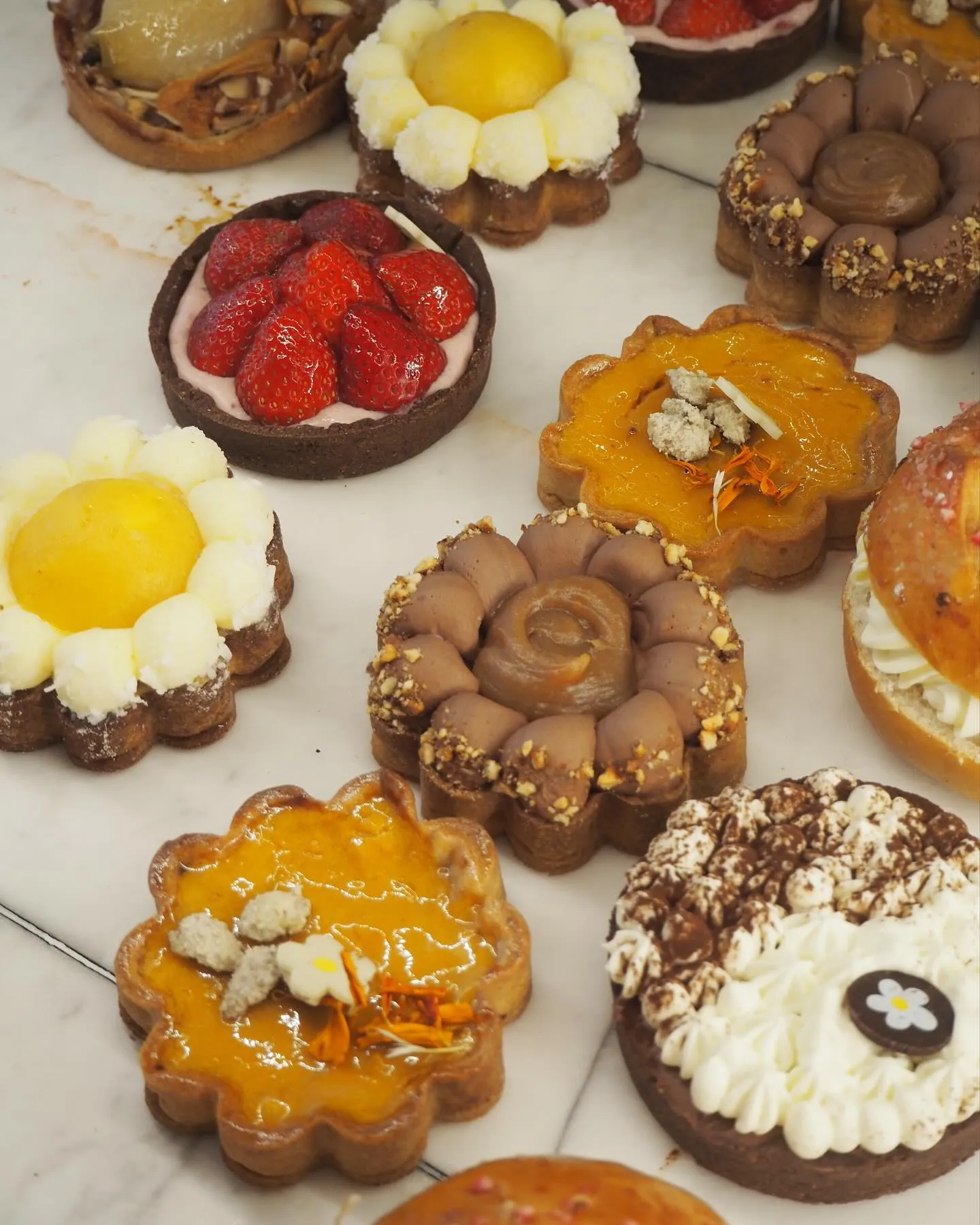 - Classic fruit tarts, including apricot and fig variations